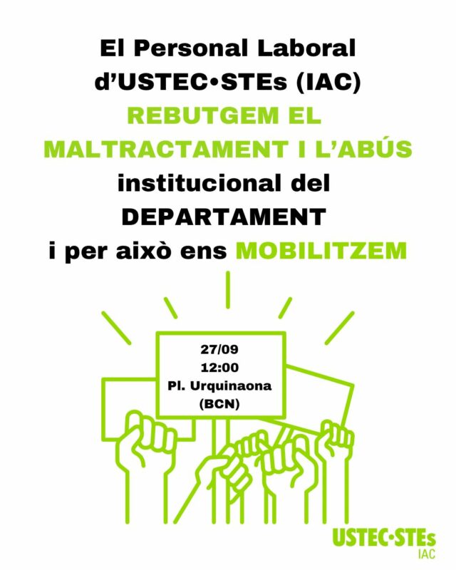 Davant la Convocatòria del concurs oposició ordinari per a la categoria professional de personal laboral EDU (B1) i TEEI (C), us informem que a partir del dia 25 de setembre s’obren els diferents períodes d’inscripció per a totes les persones interessades a participar dels assessoraments que des d’USTEC·STEs (IAC) hem organitzat.